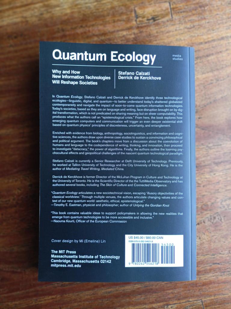 Today, 12th November, the book “Quantum Ecology: Why and How New Information Technologies Will Reshape Societies”, which I co-authored together with prof. Derrick de Kerckhove over the last six years, is released open access by MIT Press.